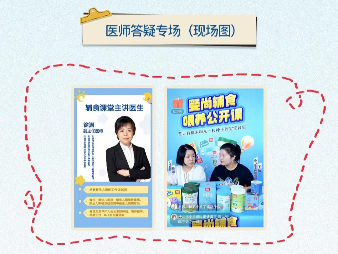 為了更好的解決各位寶媽們和象迷們?cè)谳o食期間遇到的各種問題,特邀兒科專家:徐潛,徐醫(yī)師坐鎮(zhèn)直播間答疑解惑,現(xiàn)場(chǎng)提問氛圍火熱,徐醫(yī)師的專業(yè)回答也收獲了直播間家人們的好評(píng)和感謝,作為主辦方也很開心這場(chǎng)輔食喂養(yǎng)公開課內(nèi)容能幫助各位寶媽們和象迷們走向輔食科學(xué)喂養(yǎng)之路。